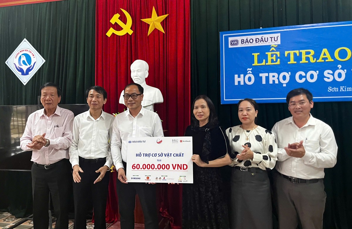 Quỹ học bổng Vì trẻ em Việt Nam của Báo Đầu tư hỗ trợ trang thiết bị trường học cho Trường Mầm non Sơn Kim 2 (60 triệu đồng) - xã biên giới Sơn Kim 2 và Trường Mầm non Sơn Bằng (45 triệu đồng) xã Sơn Bằng, cùng huyện Hương Sơn, tỉnh Hà Tĩnh. |
