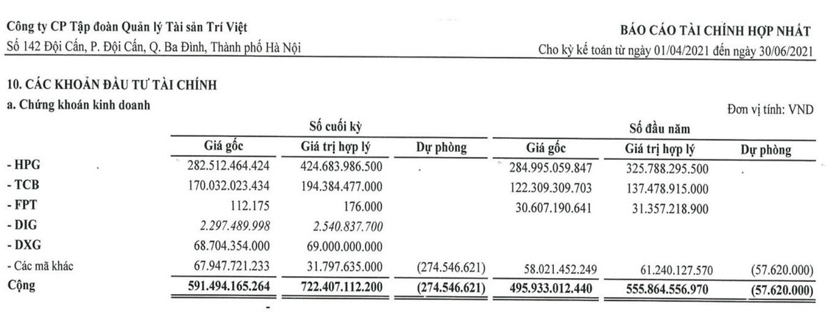 Đặc biệt, hoạt động đầu tư tài chính trong 6 tháng đầu năm 2021 của TVC đạt hiệu quả cao, đến thời điểm hiện tại danh mục đầu tư của TVC đang nắm giữ một số mã Bluechip (HPG, TCB, DXG) với giá vốn là 591 tỷ, thặng dư danh mục đầu tư là 131 tỷ (tại ngày 30/06/2021).