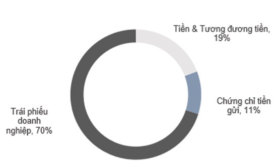 Tại ngày 19/4/2019, 70% tổng tài sản của TCBF phân bổ vào trái phiếu doanh nghiệp, tiếp đến là tiền và tương đương tiền (19%) và chứng chỉ tiền gửi (11%). Trong đó, khoản đầu tư lớn nhất của Quỹ là vào hai trái phiếu MSN11718 và SDI11717, đều với tỷ trọng 8% tổng tài sản, tiếp theo là khoản đầu tư vào trái phiếu NVL11715 (7%), CII11803 (6%)… TCBF là quỹ mở, giao dịch 5 phiên/tuần, tập trung đầu tư vào các tài sản có thu nhập cố định.