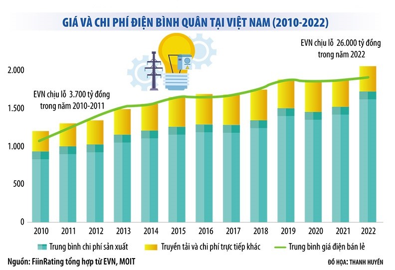 Theo Bộ Công thương, ước tính khoản lỗ của EVN là 26.000 tỷ đồng vào năm 2022, tương đương khoảng 10,5% tổng vốn chủ sở hữu của Tập đoàn tính đến năm 2021. Để giải quyết những vấn đề này, EVN đã tăng giá bán lẻ điện thêm 3% vào năm 2022, nhưng chỉ điều chỉnh giá điện vừa phải là không đủ để giải quyết tình trạng thua lỗ.