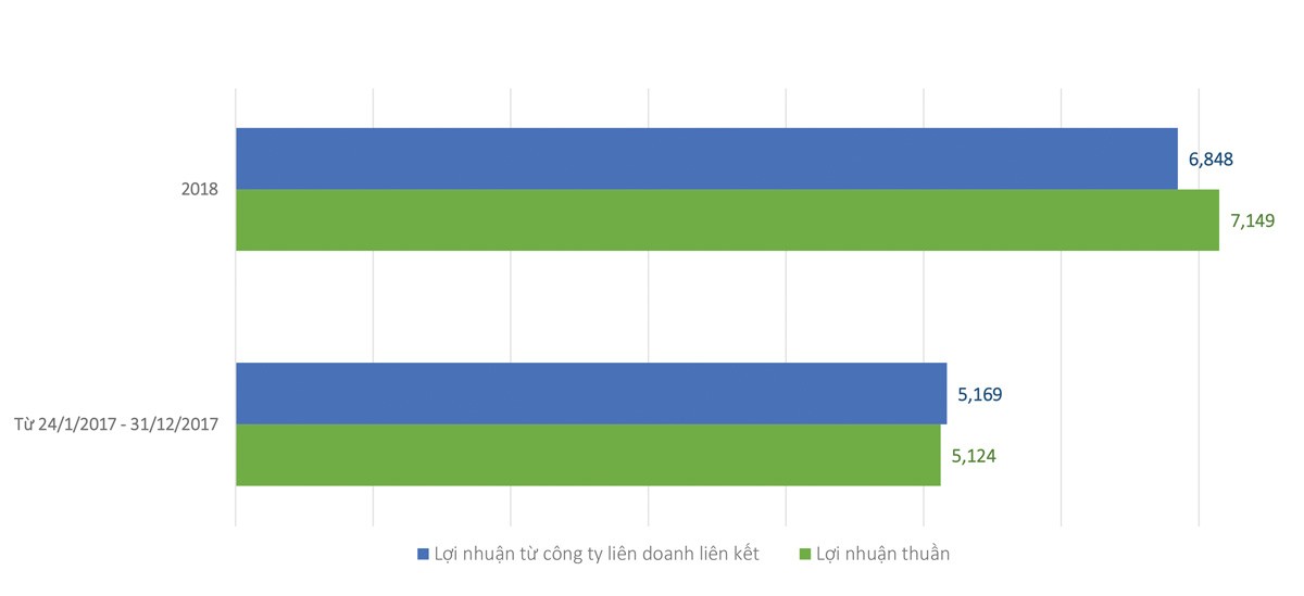 Lợi nhuận từ công ty liên doanh đóng góp chính cho lợi nhuận thuần của VEAM (tỷ đồng)