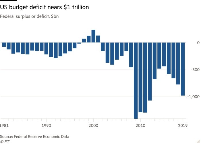 Thâm hụt ngân sách liên bang đã tăng 26% so với năm trước, chiếm 4,6% GDP của Mỹ, cao hơn 0,8% so trong năm tài khóa 2018.