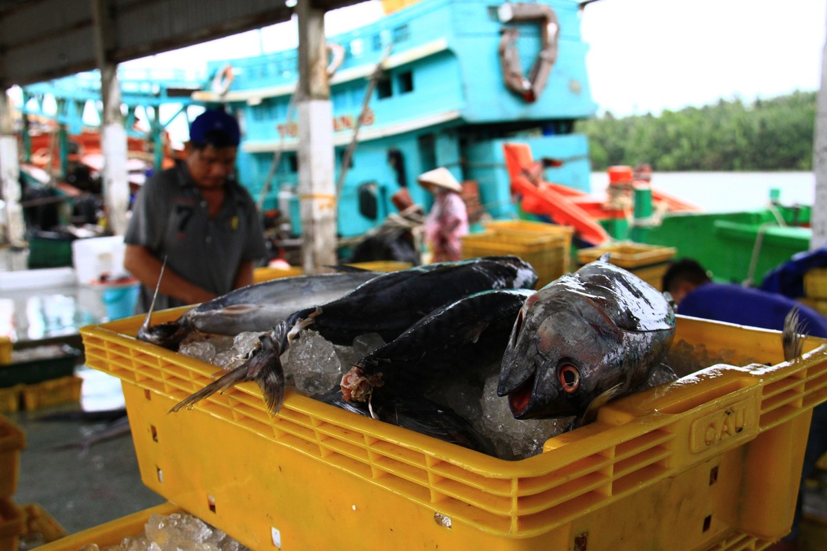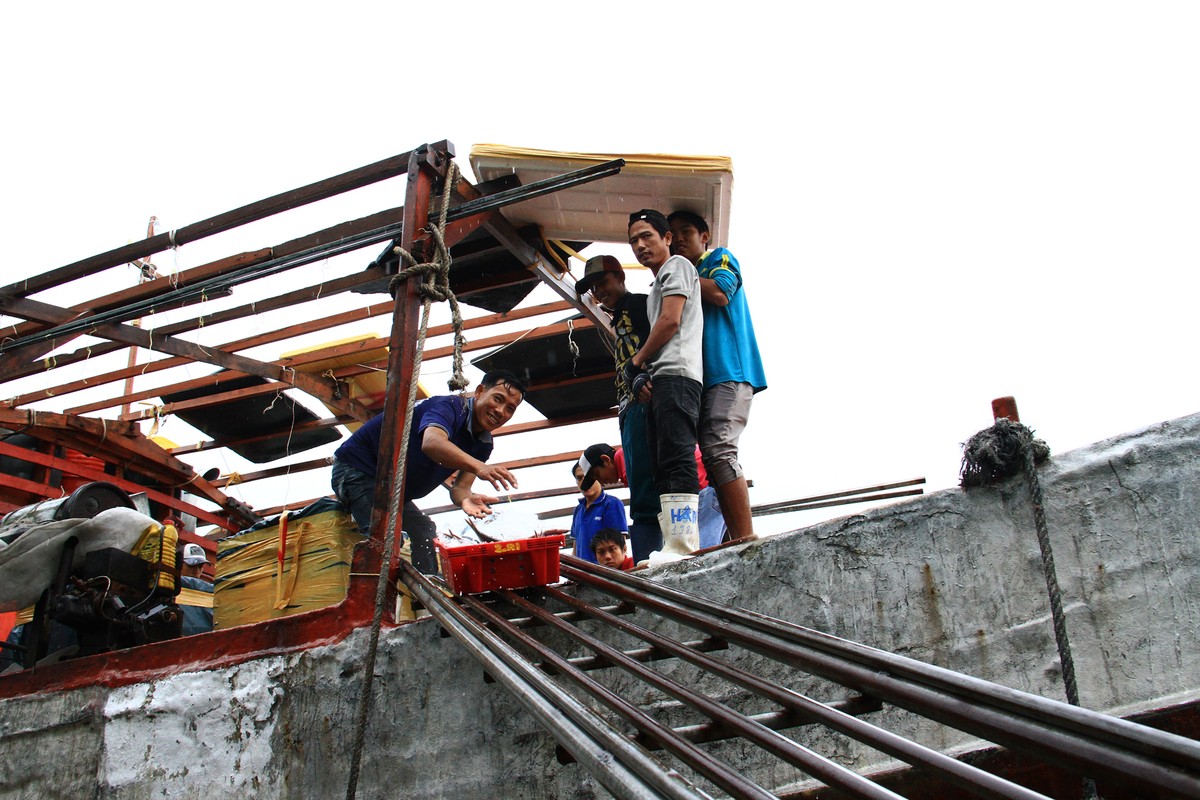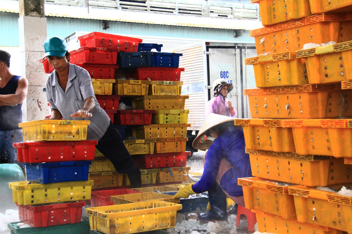 Sau khi cân, cá sẽ được ướp lạnh trước khi vận chuyển.