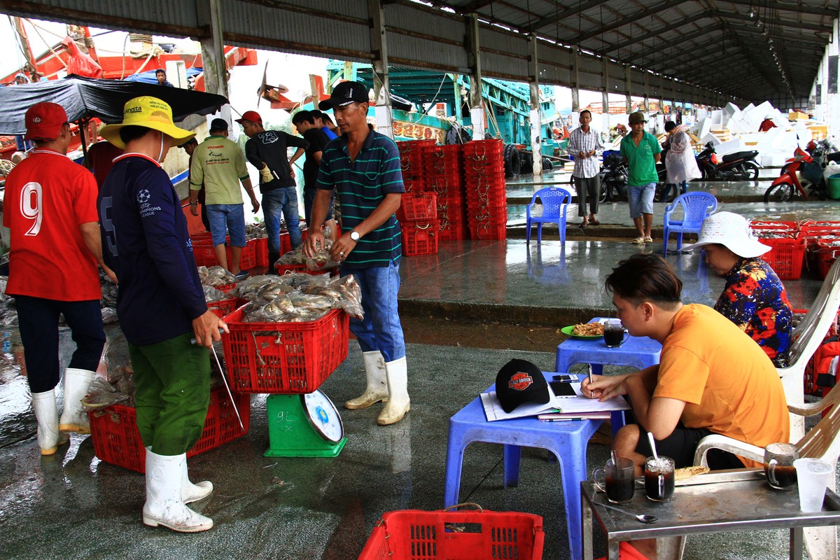 Cả các khách mua lẻ, chủ yếu từ các nhà hàng cũng đến cảng cá để thu mua.