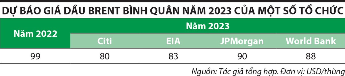 Theo dự báo của một số tổ chức quốc tế, giá dầu thô Brent bình quân năm 2023 sẽ ở mức 80 - 90 USD/thùng, giảm khoảng 10 - 20% so với năm 2022. Theo đó, giá nhiên liệu và nguyên vật liệu như vật liệu xây dựng, thức ăn chăn nuôi, phân bón… sẽ hạ nhiệt và tác động tích cực đến lạm phát trong nước.