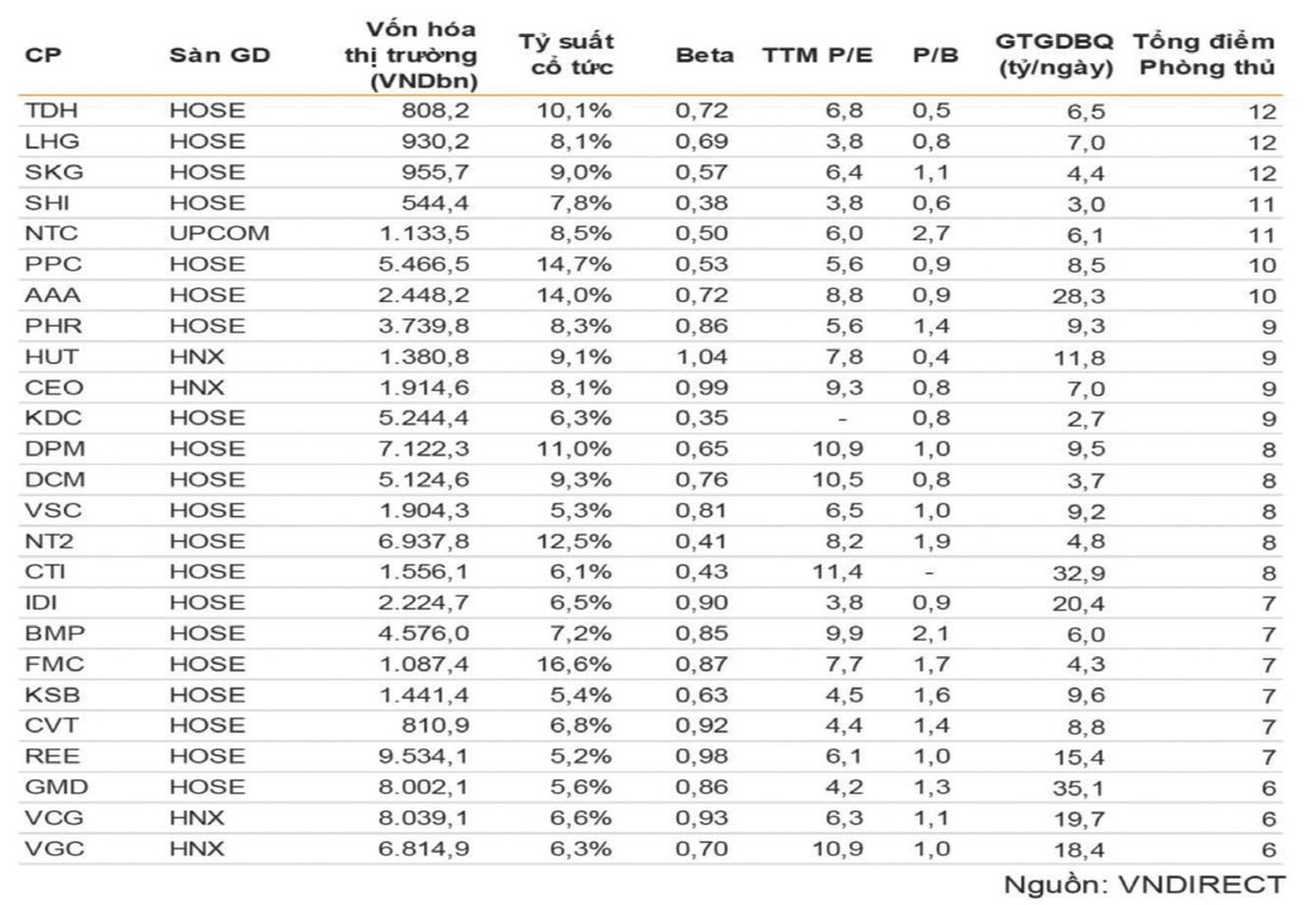 25 cổ phiếu phòng thủ.