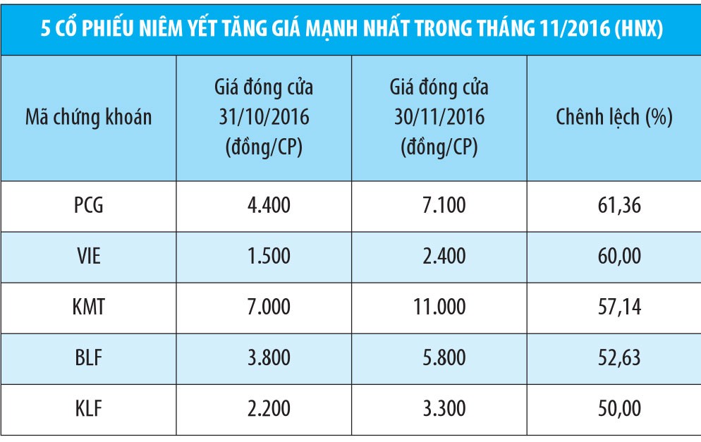 Chỉ số UPCoM-Index có 8 phiên tăng điểm, 14 phiên giảm điểm, tổng cộng giảm 1,28 điểm (-2,16%), đạt mức 58,11 điểm tại thời điểm đóng cửa phiên giao dịch cuối tháng 11.