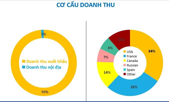 Với doanh thu xuất khẩu chiếm 99%, TNG tiếp tục tập trung vào các thị trường trọng điểm như Mỹ, Pháp, Canada. Trong đó, Mỹ chiếm 34%, Pháp chiếm 28% và Canada chiếm 14% kim ngạch xuất khẩu.