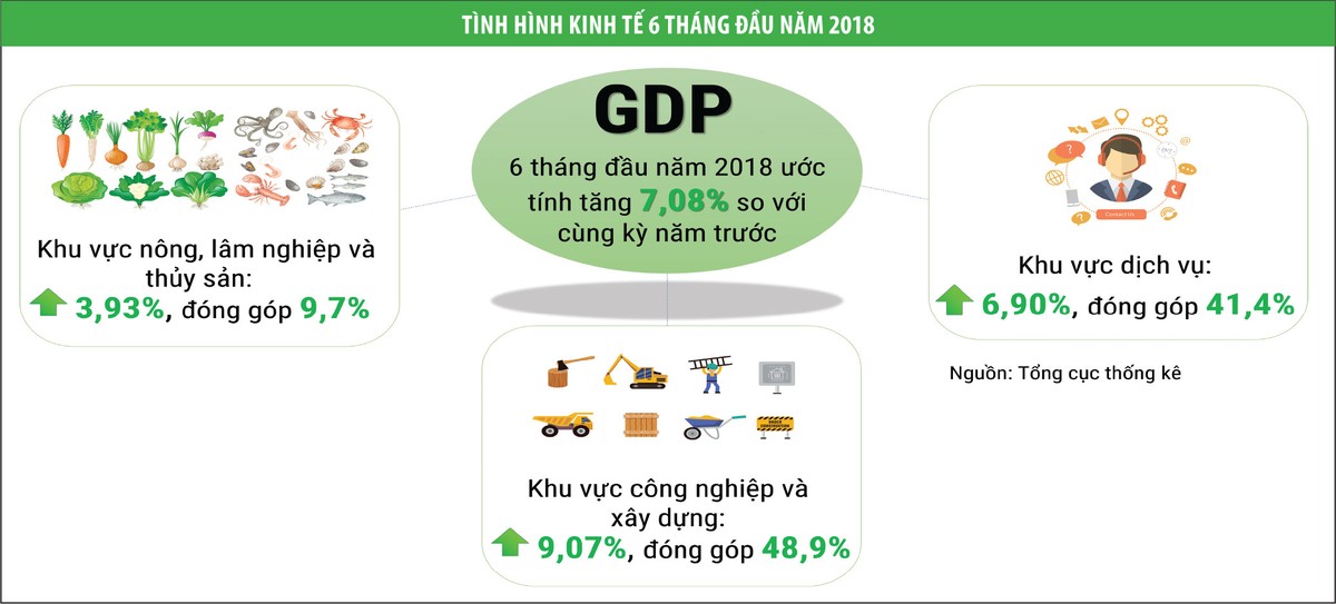 Tổng cục Thống kê vừa công bố tăng trưởng GDP Việt Nam 6 tháng đầu năm 2018 đạt 7,08%, mức cao nhất kể từ năm 2011 đến nay. Kết quả này được kỳ vọng sẽ giúp nhà đầu tư vững tin hơn vào nền tảng của TTCK. Với các công ty chứng khoán, góc nhìn về các chuyển động vĩ mô được cảm nhận với nhiều cung bậc khác nhau.