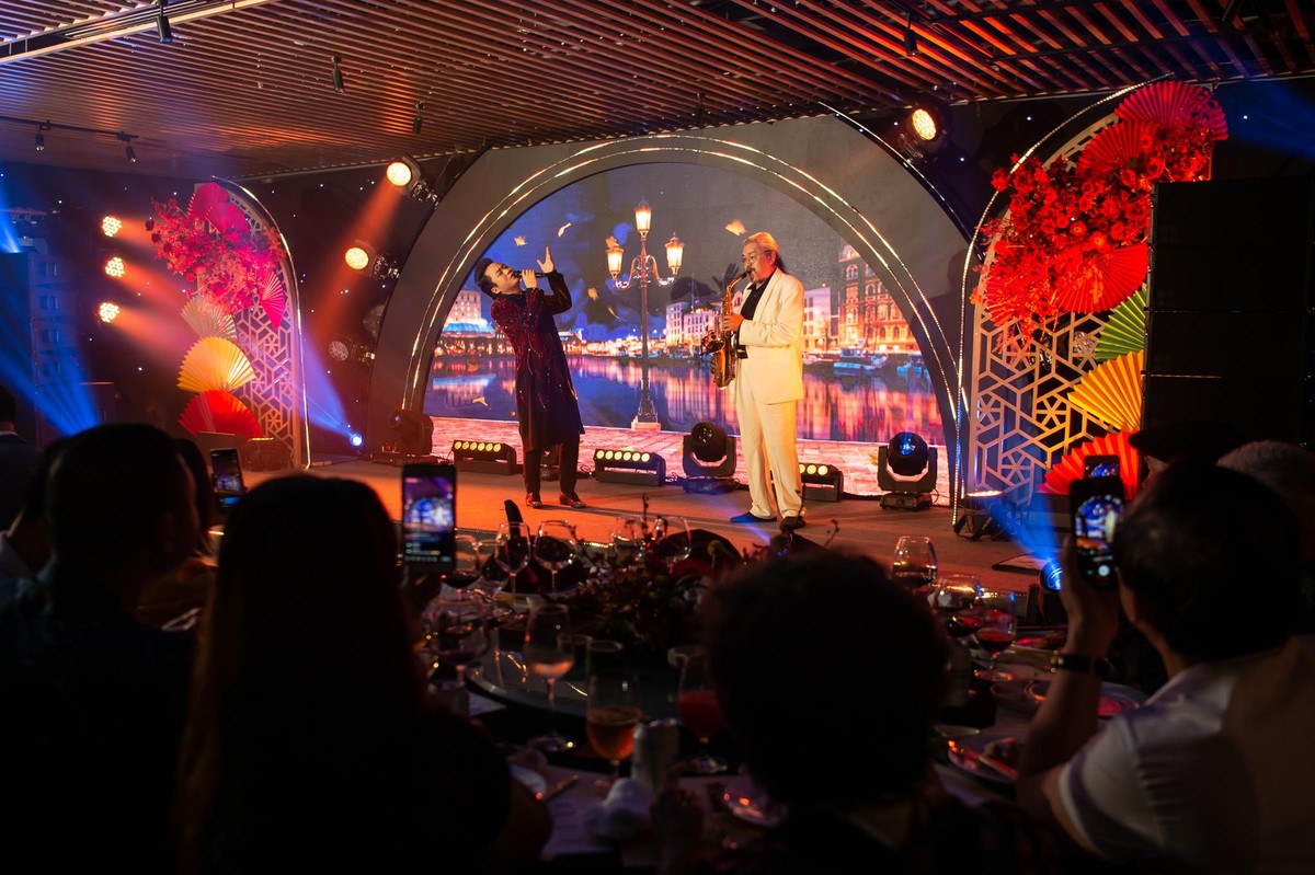 Ca sĩ Tùng Dương cùng Nghệ sĩ Saxophone Quyền Văn Minh đưa khán phòng phiêu du theo điệu nhạc.