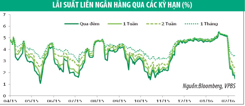 Lợi suất trái phiếu tất cả các kỳ hạn trên thị trường sơ cấp tiếp tục giảm nhẹ. Nhu cầu vốn gia tăng vào đầu tuần nhưng sau đó giảm nhẹ vào cuối tuần, dẫn đến lãi suất trên thị trường liên ngân hàng tăng mạnh rồi giảm nhẹ vào thứ Sáu.