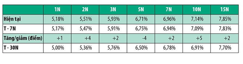 Trong tuần trước đó, NHNN cam kết giữ nguyên mức lãi suất cơ bản và không tăng tỷ giá từ nay cho đến cuối năm. Nhu cầu vay vốn ngắn hạn để đầu cơ tỷ giá cũng vì vậy giảm dần, dẫn tới việc lãi suất giảm mạnh. Tuy nhiên, lãi suất liên ngân hàng đã bật tăng khá cao tại tất cả các kỳ hạn trong tuần đầu tiên của tháng 9 khi nhu cầu vay vốn của các ngân hàng tăng vào đầu tháng để đáp ứng mức dự trữ bắt buộc của NHNN. Theo Bloomberg, lãi suất qua đêm là 3,9%/năm, 1 tuần 4,1%/năm; 2 tuần là 4,3%/năm, 1 tháng là 4,4%/năm.