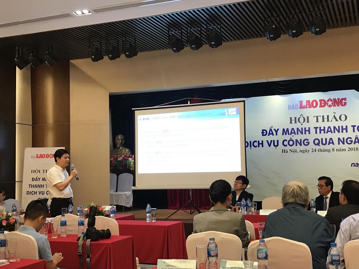 Tại Hội thảo “Đẩy mạnh thanh toán dịch vụ công qua ngân hàng” do NHNN tổ chức sáng nay 24/8 tại Hà Nội, ông Nguyễn Quốc Dũng, Trưởng Ban Kinh doanh Tập đoàn Điện lực Việt Nam cho biết, trước khi chưa thanh toán tiền điện qua ngân hàng, Tập đoàn rất vất vả trong việc thu tiền điện trong khi năng suất lao động bị hạn chế.