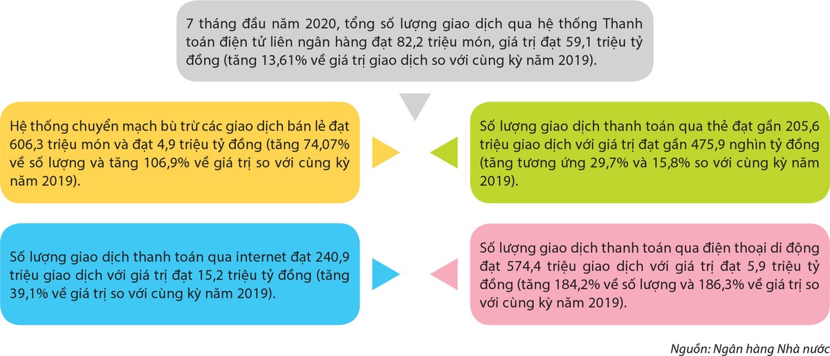 Thứ năm, thành quả bao trùm về thanh toán không dùng tiền mặt là các con số tăng trưởng ấn tượng hàng năm đều ở mức 2, thậm chí 3 con số về doanh số thanh toán, số món thanh toán.