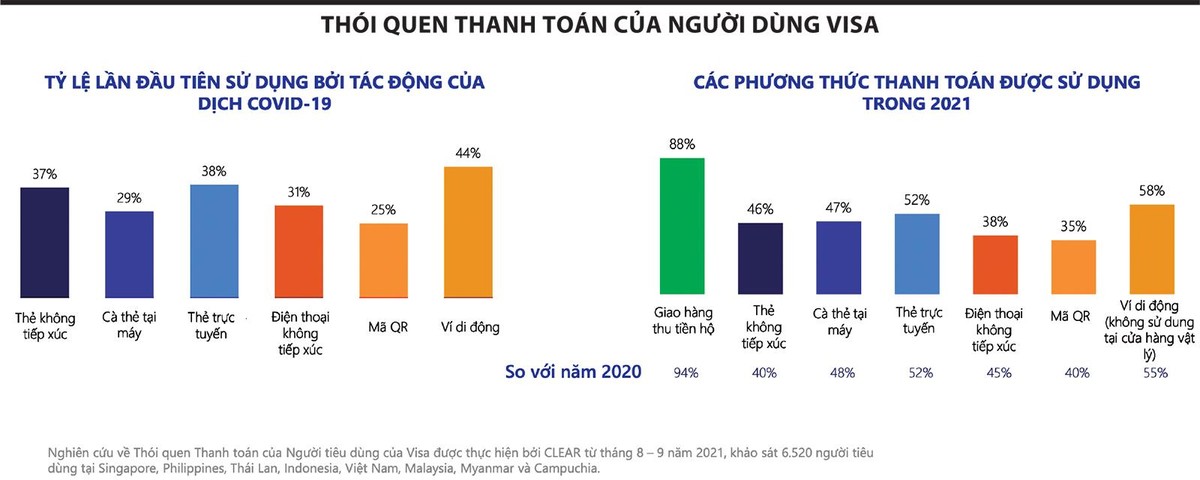 Người tiêu dùng có xu hướng ưa thích thanh toán không tiền mặt với 78% người cho biết sẽ tiếp tục sử dụng các phương thức thanh toán kỹ thuật số kể cả khi đại dịch kết thúc; 65% có xu hướng chuyển sang không dùng tiền mặt nhờ sử dụng thẻ không tiếp xúc và ví điện tử. Các doanh nghiệp trong lĩnh vực kinh doanh thương mại điện tử và thanh toán điện tử có thể tiếp tục hoạt động kinh doanh khi ít chịu tác động bởi dịch bệnh.