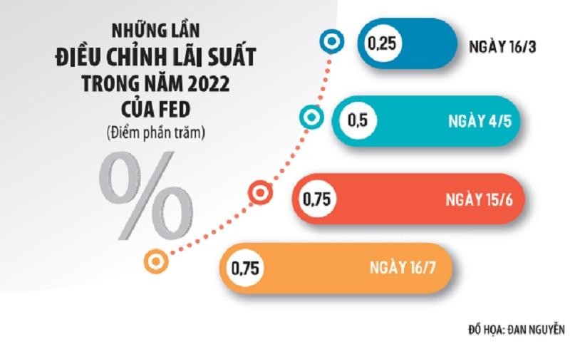 Fed đã nâng lãi suất ngắn hạn 4 lần trong năm nay, trong đó có 2 lần nâng vượt bậc lên 75 điểm. Điều này cho thấy rõ ràng rằng, sẽ có thêm nhiều đợt tăng lãi suất nữa trong thời gian tới. Thị trường đang chờ đợi một đợt tăng thêm 75 điểm cơ bản nữa vào tháng 9 tại cuộc họp chính sách tiếp theo của Fed. Fed cũng đã tiết giảm hoạt động mua các tài sản tài chính và bảng cân đối kế toán của họ hiện đang bị thu hẹp lại.