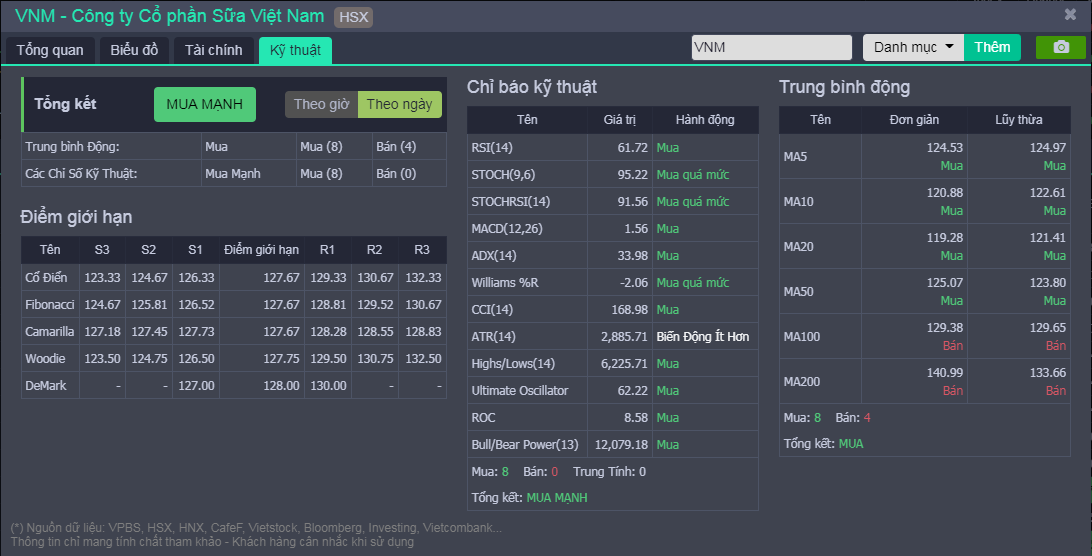 Theo anh Đức, một tính năng khá tiên tiến so với bảng giá của các công ty chứng khoán khác là bảng giá của VPBS còn lượng hóa những chỉ báo kỹ thuật và áp dụng lý thuyết về phân tích kỹ thuật để đưa ra khuyến nghị giao dịch cho khách hàng. “Những thông tin này mang tính tham khảo rất tốt để nhà đầu tư thực hiện tìm kiếm điểm mua, điểm bán và giao dịch trong ngắn hạn”, anh Đức nói. (Minh họa như hình 2).