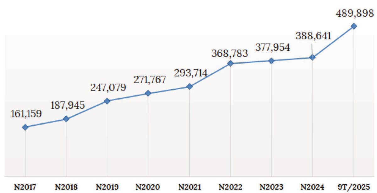 Lưu ý rằng, quy mô hàng tồn kho, nợ vay của các doanh nghiệp bất động sản nhà ở nói trên đã tăng rất nhanh trong 9 tháng qua. Theo thống kê từ VietstockFinance, tổng dư nợ vay của 104 doanh nghiệp bất động sản trên sàn chứng khoán (HOSE, HNX và UPCoM) đạt gần 390.700 tỷ đồng vào cuối tháng 9/2025, tăng 37% so với đầu năm.