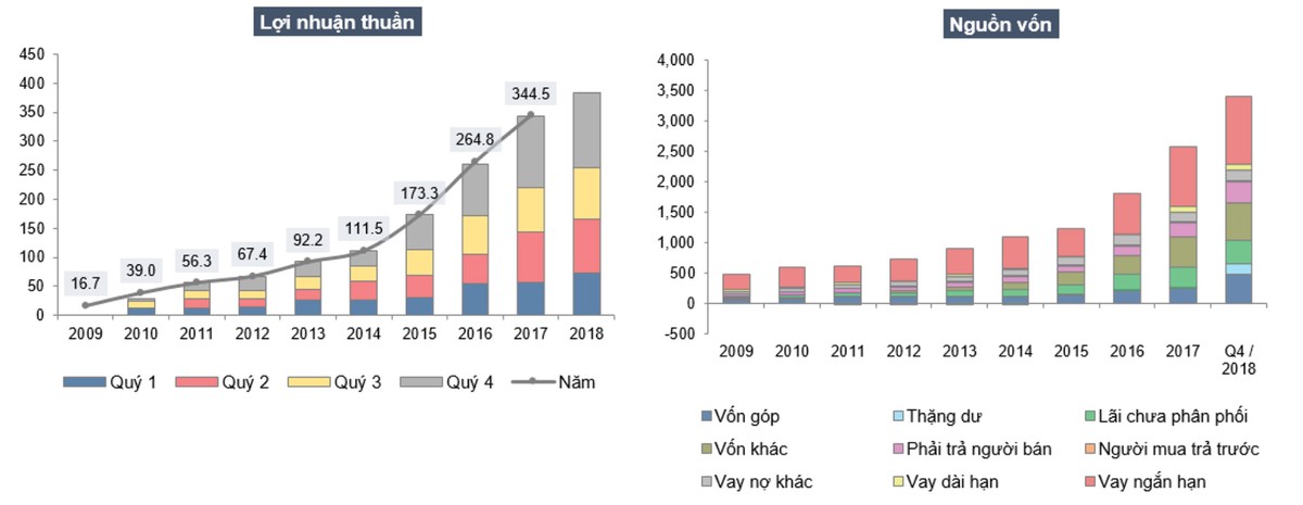 Với lợi thế là doanh nghiệp đầu ngành, VHC nhanh chóng tận dụng và ghi nhận dấu ấn tăng trưởng lợi nhuận tới 140% so với cùng kỳ. Tuy nhiên, thị trường cá tra đang dần ổn định lại và khoảng trống chênh lệch giữa đầu vào và đầu ra sẽ nhanh chóng thu hẹp, kéo theo biên lợi nhuận của các doanh nghiệp cá tra cũng sẽ quay trở về trạng thái bình thường. Kết quả kinh doanh quý IV/2018 của các doanh nghiệp cá tra đã thể hiện khá rõ điều này. Không khó để nhận thấy việc duy trì tốc độ tăng trưởng EPS dương trong năm 2019 đối với VHC là một thách thức không nhỏ.