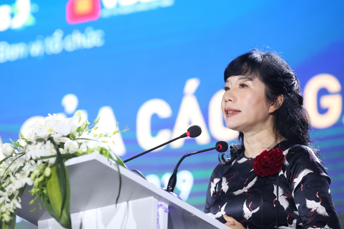 Bà Nguyễn Tú Anh, Chủ tịch HĐQT Công ty cổ phần Thanh toán quốc gia Việt Nam phát biểu tại sự kiện
