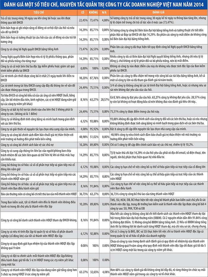 Nhìn chung, kết quả đánh giá năm 2014 cho thấy những nỗ lực của các cơ quan quản lý và các doanh nghiệp niêm yết trong việc cải thiện tình hình quản trị công ty của các công ty đại chúng.