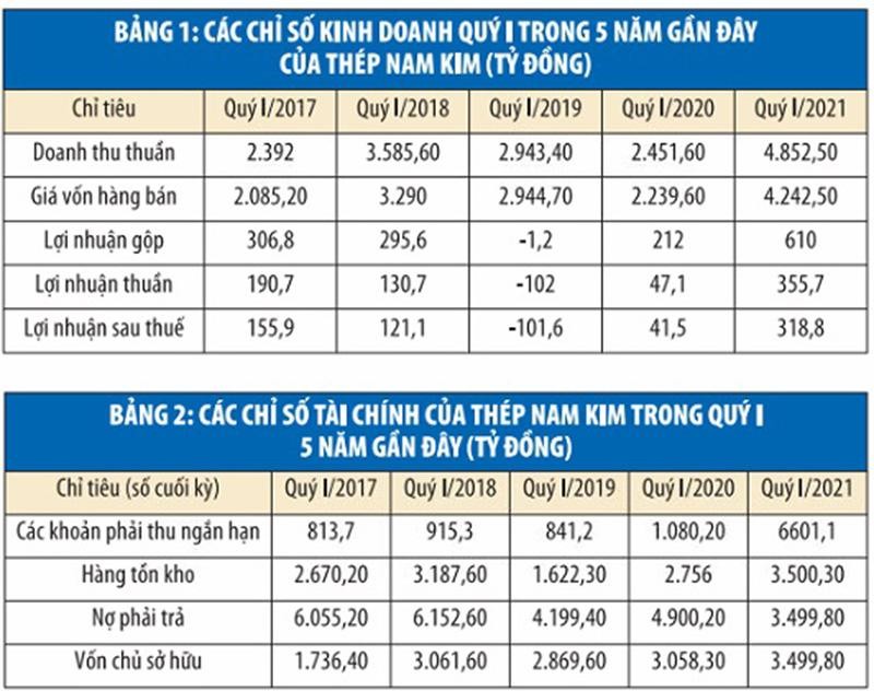 Các con số tài chính cho thấy, thành quả quý đầu năm của Thép Nam Kim chủ yếu có được từ sự chênh lệch giá vốn và giá bán trong quý I/2021.
