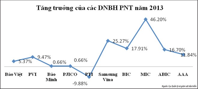 Tại nhóm sau, Samsung Vina (SVI) là một hiện tượng, khi đạt tốc độ tăng trưởng ấn tượng và dần tăng hạng từ vị trí số 10 (năm 2011) lên vị trí thứ 6 về mặt thị phần ở thời điểm này, bám sát vị trí thứ 5 của CTCP Bảo hiểm Bưu điện (PTI). Tăng trưởng doanh thu phí bảo hiểm của SVI đạt 66% trong năm 2012 và 25% trong năm 2013, thuộc nhóm rất cao của thị trường. SVI đã đánh bật Bảo hiểm BIDV (BIC) để giành lấy vị trí số 6 từ năm 2012 và đang tăng tốc khá nhanh so với BIC. SVI cũng liên tục có lợi nhuận khủng và hiện đang có tỷ suất sinh lời cao nhất trên thị trường.