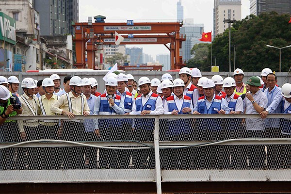 Tại hiện trường, ông Bùi Xuân Cường, Giám đốc Ban quản lý đường sắt đô thị, giới thiệu với Thủ tướng tổng thể các dự án đường sắt đô thị bao gồm 11 tuyến, trong đó có 8 tuyến điện ngầm với tổng chiều dài 220km. Dự án có tổng vốn thực hiện 25 tỉ USD. Hiện nay việc thi công dự án metro số 1 hiện đạt hơn 63,5%.