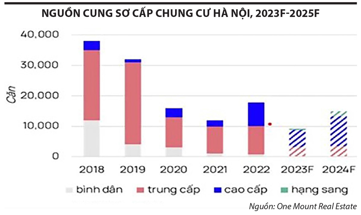 Trung tâm Nghiên cứu thị trường và Am hiểu khách hàng One Mount Real Estate ước tính, trong năm 2024, nguồn cung căn hộ sơ cấp mới sẽ đạt khoảng 16.000 căn. Đặc biệt, sau một thời gian dài nguồn vốn FDI chảy mạnh vào bất động sản (luôn xếp thứ 2 trong các lĩnh vực thu hút FDI nhiều nhất), dự báo năm 2024 sẽ xuất hiện khá nhiều dự án của các chủ đầu tư nước ngoài, ở cả khu Đông và khu Tây Hà Nội, nên người mua nhà sẽ có nhiều lựa chọn hơn, nhưng sự hấp dẫn trong chính sách bán hàng chỉ đáp ứng một bộ phận có thu nhập cao, bởi các sản phẩm phần lớn thuộc phân khúc cao cấp.
