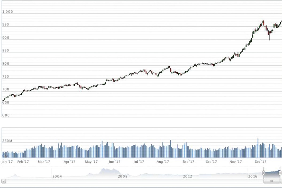 Kết thúc năm 2017, chỉ số VN-Index đóng cửa ở mức 984,24 điểm, tức tăng hơn 48%