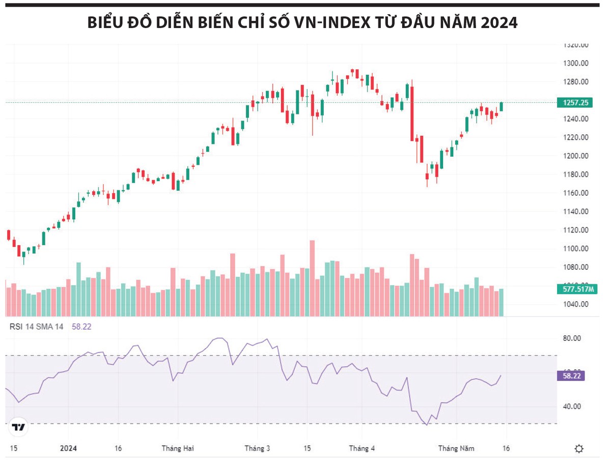 Trong tháng 4, chỉ số VN-Index đã có pha điều chỉnh từ vùng đỉnh 1.290 điểm của năm 2023 về sát khu vực 1.170 điểm, kết hợp với bối cảnh tỷ giá biến động mạnh, giá vàng tăng cao, chưa kể đến những bất ổn địa chính trị leo thang. Tất cả những yếu tố này đã khiến một số bộ phận nhà đầu tư nghĩ tới kịch bản tiêu cực.