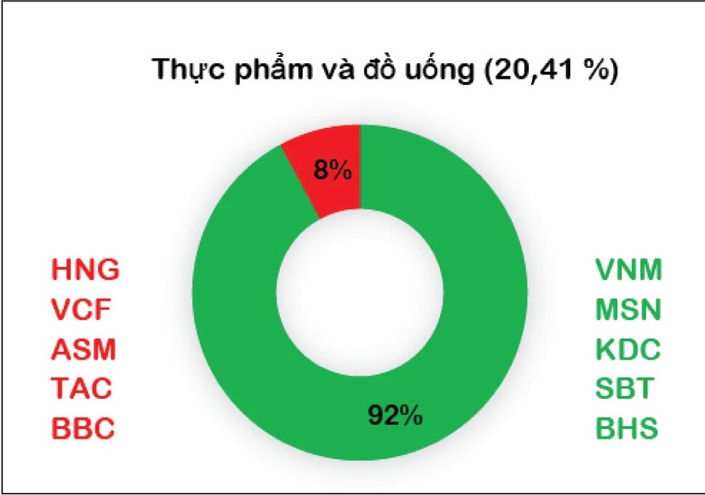 Nếu chia nhỏ các nhóm ngành theo % vốn hóa, có thể quan sát thấy nhóm ngành chủ chốt đang ở trạng thái tích cực nâng đỡ thị trường hiện nay gồm nhóm ngân hàng, thực phẩm và đồ uống, bất động sản, điện, nước và xăng dầu khí đốt. Đây cũng là các nhóm sẽ đóng vai trò hỗ trợ thị trường chứng khoán trong tháng 6.