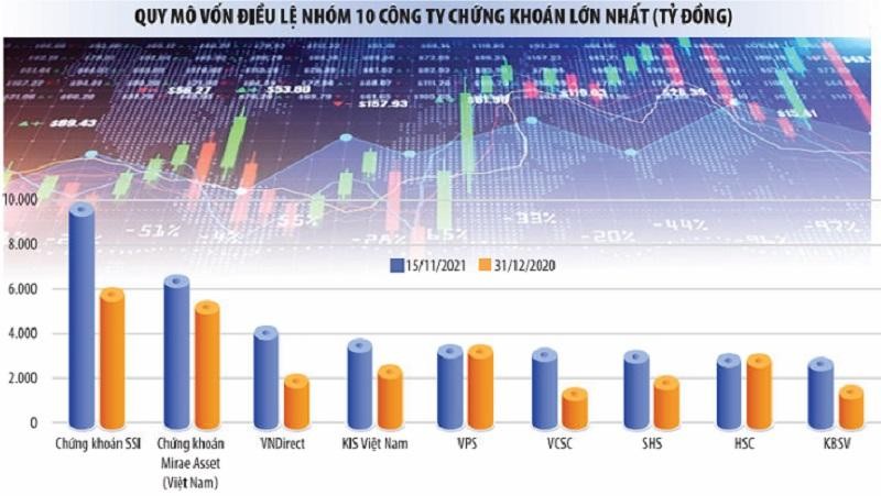 Trong 10 năm tái cấu trúc thị trường và xa hơn là 25 năm kể từ ngày xây dựng nền móng đầu tiên khi thành lập Ủy ban Chứng khoán Nhà nước, thị trường đã có nhiều thay đổi. Hàng loạt công ty chứng khoán bị thanh lọc, giảm số lượng từ 106 xuống hơn 70 công ty. Dù không phát hành thêm giấy phép kinh doanh mới cho ngành, nhiều công ty chứng khoán đã “thay da, đổi thịt” khi đón những ông chủ mới cả nội và ngoại. Quy mô vốn điều lệ từ vài trăm tỷ đồng đã nhanh chóng vươn lên con số ngàn tỷ. Ở những “ông lớn” đầu ngành, quá trình tích lũy vốn, cơ sở khách hàng, năng lực hoạt động… đã đưa quy mô tài sản những định chế này không thua kém gì ngân hàng cỡ nhỏ. Tỷ lệ tổng tài sản của các công ty chứng khoán trên toàn hệ thống tài chính có thể vươn lên các mốc xa hơn so với mức 7% hiện tại.