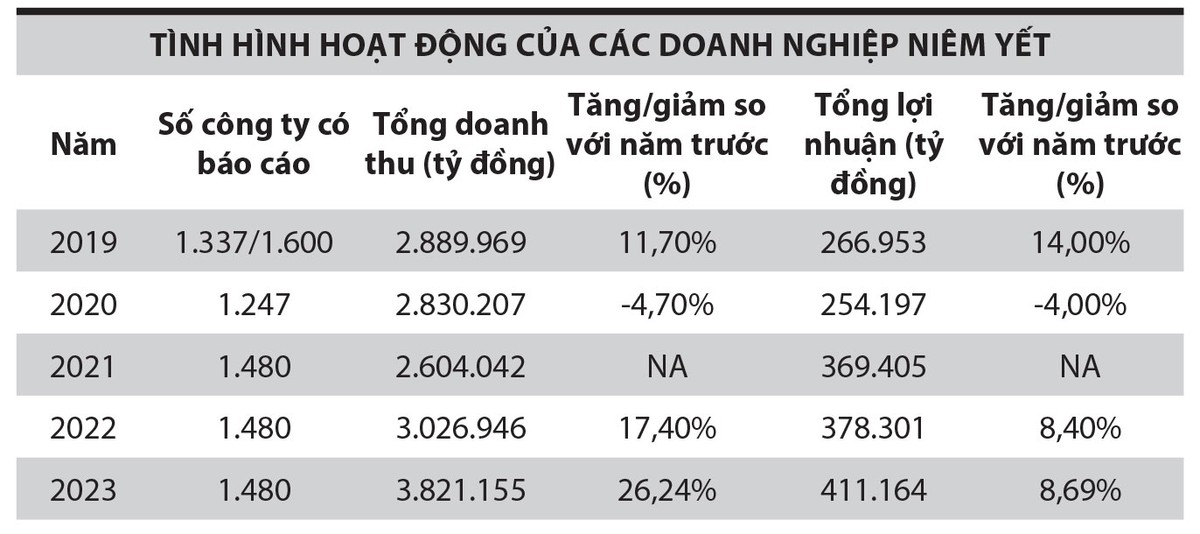 Cùng với đó, số lượng các doanh nghiệp niêm yết không ngừng gia tăng và hiệu quả hoạt động kinh doanh được cải thiện đáng kể, thể hiện qua những có số tăng trưởng ổn định về doanh thu và lợi nhuận qua từng năm.