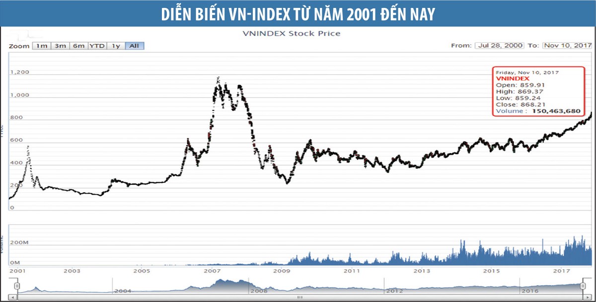 Vào thời điểm hiện tại, chỉ số chứng khoán Việt Nam VN-Index đã vượt qua 860 điểm, mức cao nhất trong vòng 9 năm trở lại đây. Với mức tăng trưởng 27% của VN-Index từ đầu năm đến nay đã đưa TTCK Việt Nam nằm trong Top 10 thị trường tăng điểm cao nhất thế giới, vượt trội so với tất cả các nước trong khối ASEAN, cũng như một số thị trường phát triển khác.