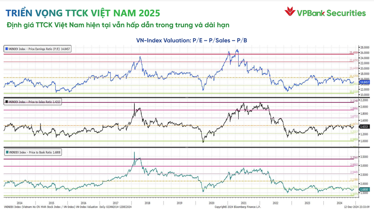 Trong hội thảo VPBankS Talk 04 chủ đề “Vững vàng vượt sóng gió”, ông Trần Hoàng Sơn, Giám đốc Chiến lược thị trường VPBankS Research dự báo, thị trường chứng khoán Việt Nam đối mặt bẫy giảm giá, có thể tiếp tục rung lắc đầu năm 2025.