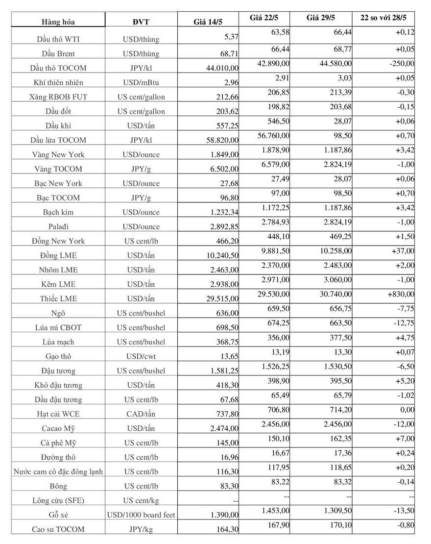 Giá một số mặt hàng trên thị trường quốc tế tuần qua