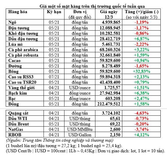 Đồng thời, giá đường trắng kỳ hạn tháng 5/2021 trên sàn London giảm 0,8% xuống 459,5 USD/tấn, sau khi tăng 2,2% trong phiên 11/3.