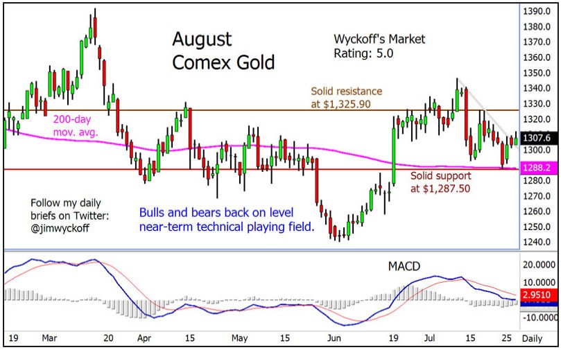 Ở góc độ kỹ thuật, giá vàng giao tháng 8 đã đóng cửa phiên thứ Ba ở gần mức thấp trong ngày và tạo nên đường giá theo ngày đi xuống đột biến. Xu hướng giảm của giá vàng hiện đang nhận được sự hỗ trợ nhẹ về mặt kỹ thuật trong ngắn hạn khi đường giá 3 tuần vẫn đang ở trên đường biểu đồ ngày.