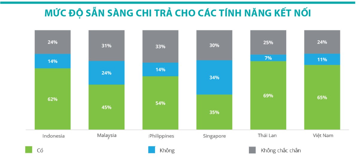 So với các thị trường khác trên toàn thế giới, mức độ người tiêu dùng ở Đông Nam Á sẵn sàng chi trả cho các tính năng kết nối cao hơn, ngoại trừ Singapore - chỉ một phần ba người tiêu dùng sẵn sàng chi trả cho các tính năng này.
