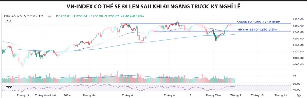 Dự báo, sau kỳ nghỉ lễ Quốc khánh 2/9, thị trường sẽ có xu hướng chủ đạo là tăng điểm, VN-Index kiểm nghiệm ngưỡng 1.300 điểm, nhưng việc theo dõi sát sao dòng tiền và lựa chọn các cổ phiếu được dòng tiền hướng đến sẽ là chìa khóa cho thành công của nhà đầu tư ngắn hạn.