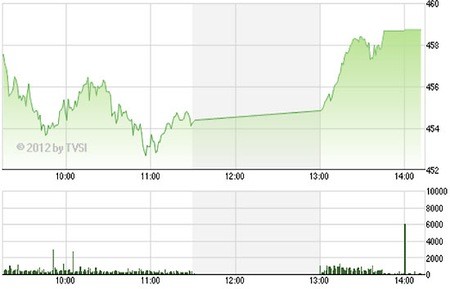 “Với việc VN-Index đóng cửa ở mức 458,74 điểm, tín hiệu đảo chiều từ cây nến Doji hình thành trước đó trở nên vô hiệu. Quan trọng hơn, phiên tăng điểm hôm nay nhiều khả năng đã giúp chỉ số phá vỡ mô hình Triangle theo chiều hướng tích cực. Khối lượng giao dịch tăng cũng củng cố tín hiệu brakout. Điểm tiêu cực đáng chú ý là sự hình thành của cây nến Hanging Man cuối phiên, ngay tại đỉnh nhỏ 460 điểm.