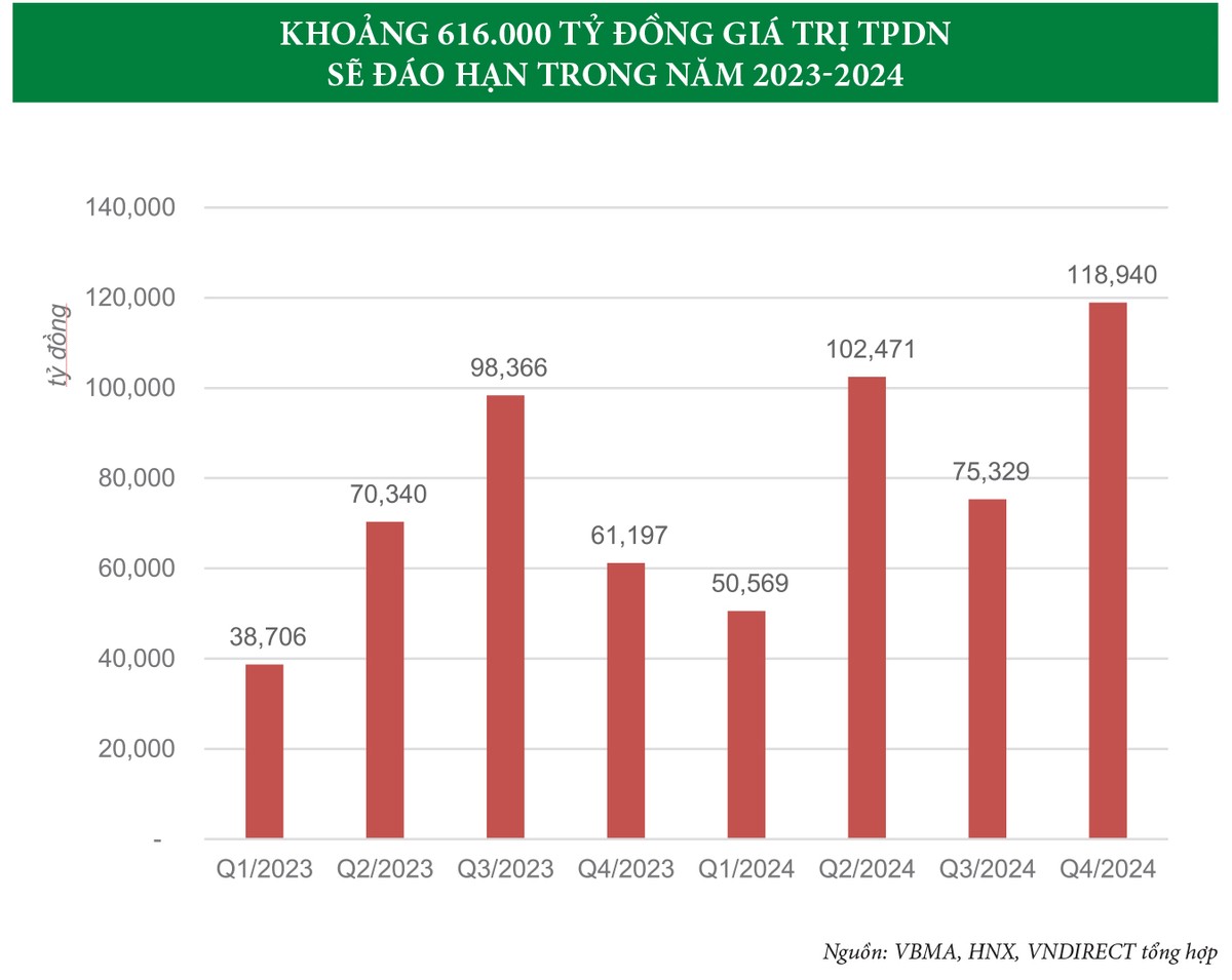 Theo số liệu từ Sở giao dịch chứng khoán Hà Nội (HNX) và Hiệp hội Thị trường Trái phiếu Việt Nam (VBMA), ước tính 159.000 tỷ giá trị TPDN sẽ đáo hạn trong 6 tháng cuối năm 2023. Nếu tính cả năm 2023 và 2024, ước tính khoảng 616.000 tỷ đồng giá trị TPDN sẽ đến hạn, tương đương 53% khối lượng TPDN đang lưu hành. Mặc dù các hoạt động mua lại TPDN đang diễn ra khá tích cực trong những tháng vừa qua, nhưng áp lực trả nợ TPDN trong 2 năm tới vẫn còn rất lớn.