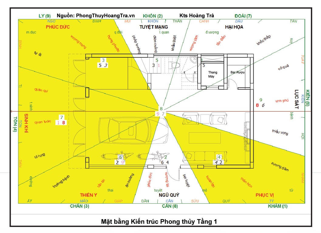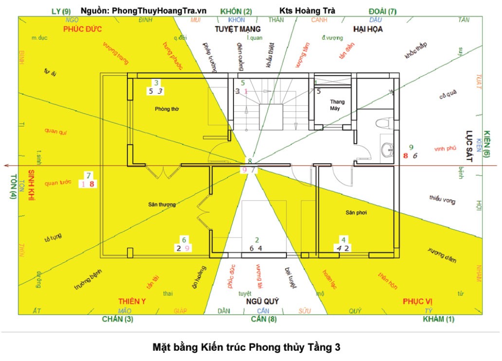 Khi lên ý tưởng kiến trúc cho tầng 2 (xem hình 3), đã phải giải lá số tứ trụ của hai vợ chồng và các thành viên trong gia đình.