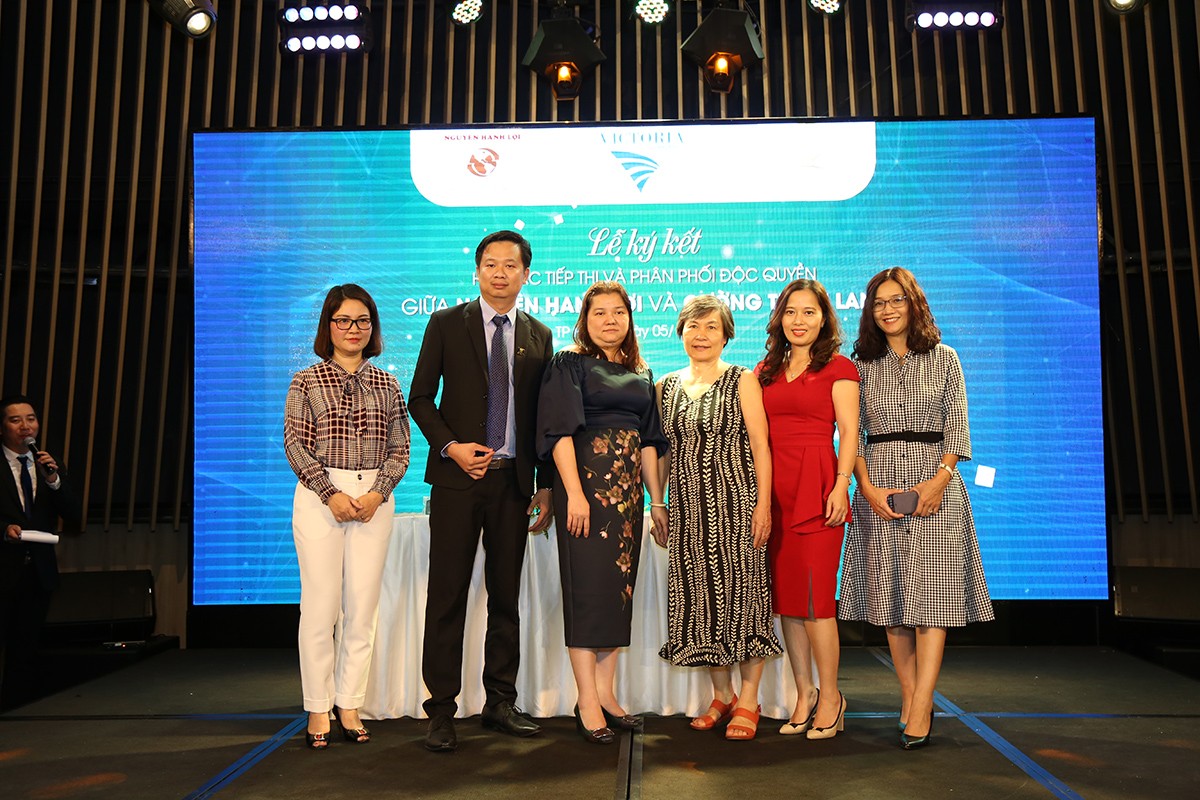 PGS.TS.KTS Nguyễn Hồng Thục, Trưởng khoa Kiến trúc Đại học Kiến trúc Hà Nội (thứ 3 từ phải qua) tham dự Lễ ký kết hợp tác phân phối độc quyền dự án Victoria Garden giữa công ty Nguyên Hanh Lợi và Cường Thịnh Land.