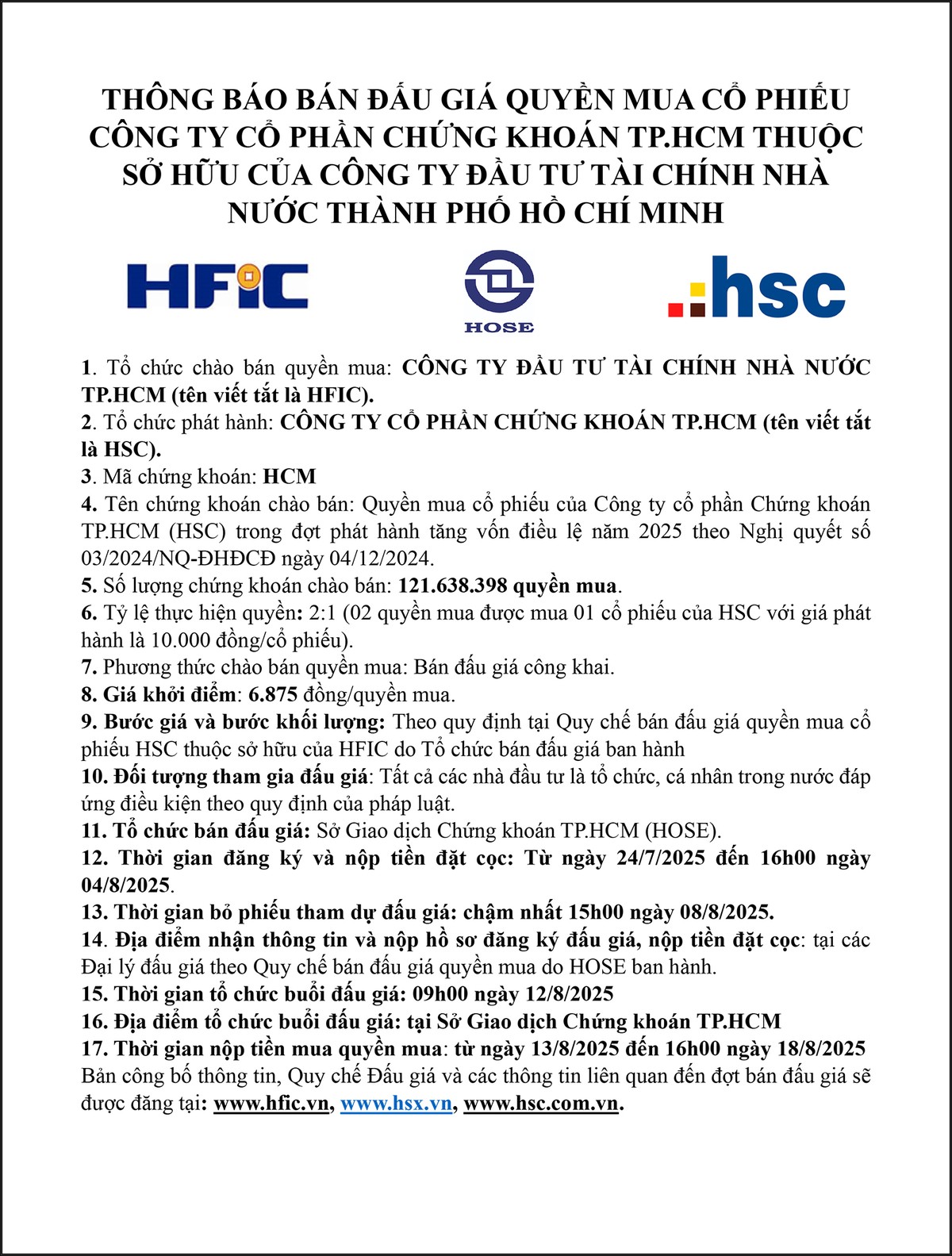 Công ty cổ phần Chứng khoán TP. HCM (HSC) thông báo tổ chức Đại hội đồng cổ đông thường niên năm 2025 02/04/2025 19:45