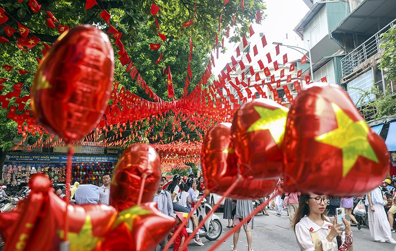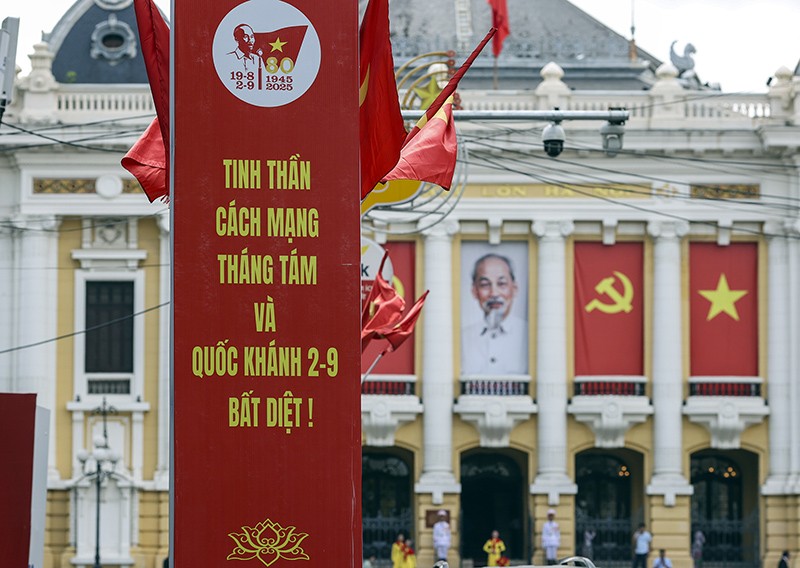 Hòa cùng không khí khẩn trương, trang nghiêm của các buổi tổng hợp luyện diễu binh, diễu hành mừng 80 năm Quốc khánh 2/9, Thủ đô Hà Nội càng rực rỡ hơn lúc nào hết bởi sắc đỏ của lá cờ Tổ quốc được bài trí tràn ngập khắp nơi.