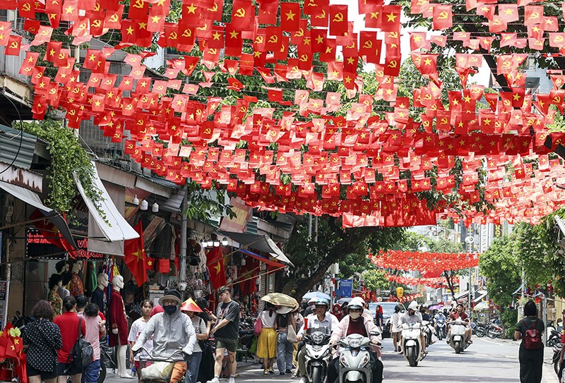 Khắp các con phố của Thủ đô, sắc đỏ của cờ Đảng, cờ Tổ quốc tung bay phấp phới