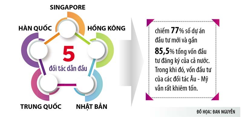 Không khó để nhận ra, dù thu hút đầu tư nước ngoài của Việt Nam vẫn rất tích cực, song phần lớn nguồn vốn này đến từ các đối tác truyền thống, mà chưa có sự bứt phá từ nhà đầu tư Âu - Mỹ.