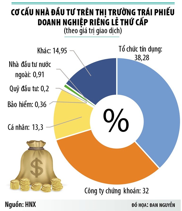 Hiện nay, bên mua trên thị trường TPDN riêng lẻ (thứ cấp) chủ yếu là ngân hàng và công ty chứng khoán (chiếm khoảng 80%). Các nhà đầu tư tổ chức khác như quỹ đầu tư chỉ chiếm 0,2%, công ty bảo hiểm chiếm 0,36%. Đặc biệt, nhà đầu tư nước ngoài chỉ chiếm vỏn vẹn 0,91%.